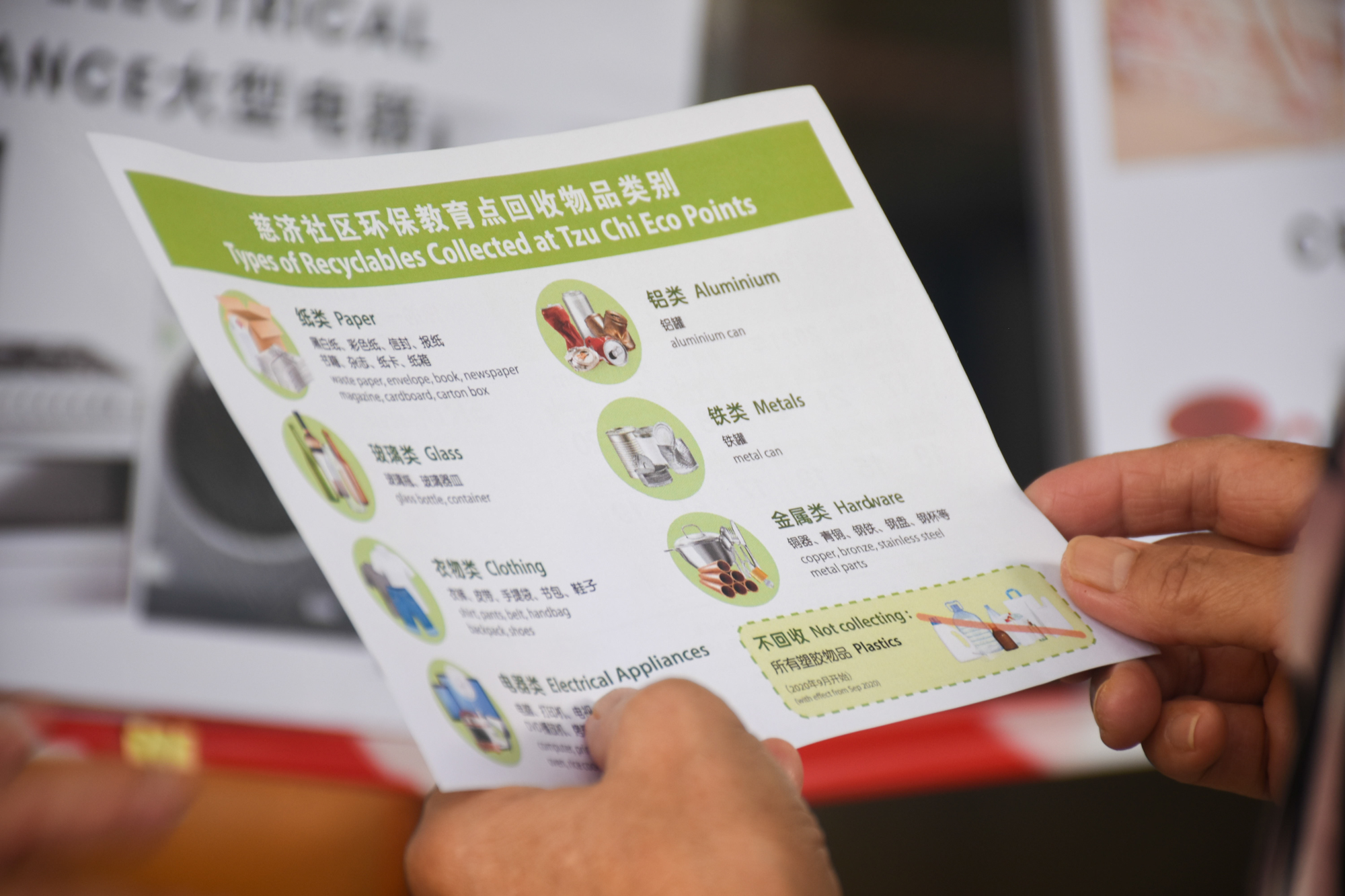 In the past, this monthly event was called “Tzu Chi Recycling Day”, and people’s understanding was limited to simply doing recycling, bringing items to us and our volunteers will get them sorted. During the COVID-19 period in 2020, we had a chance to slow down. In line with safety measures, we began to shift our approach by encouraging the public to sort recyclables themselves, while also creating more opportunities for interaction.