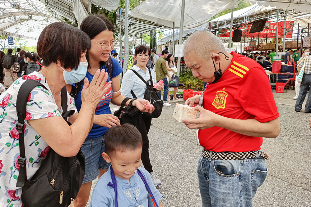 In addition to the juice stall, the director of the Kimly Group, a coffee shop chain, also sponsored CNY goods for the fair, saying that it was easier to "pay" to support the charity fair for two years during the pandemic but it was more joyful to come to the site and physically contribute to the effort.