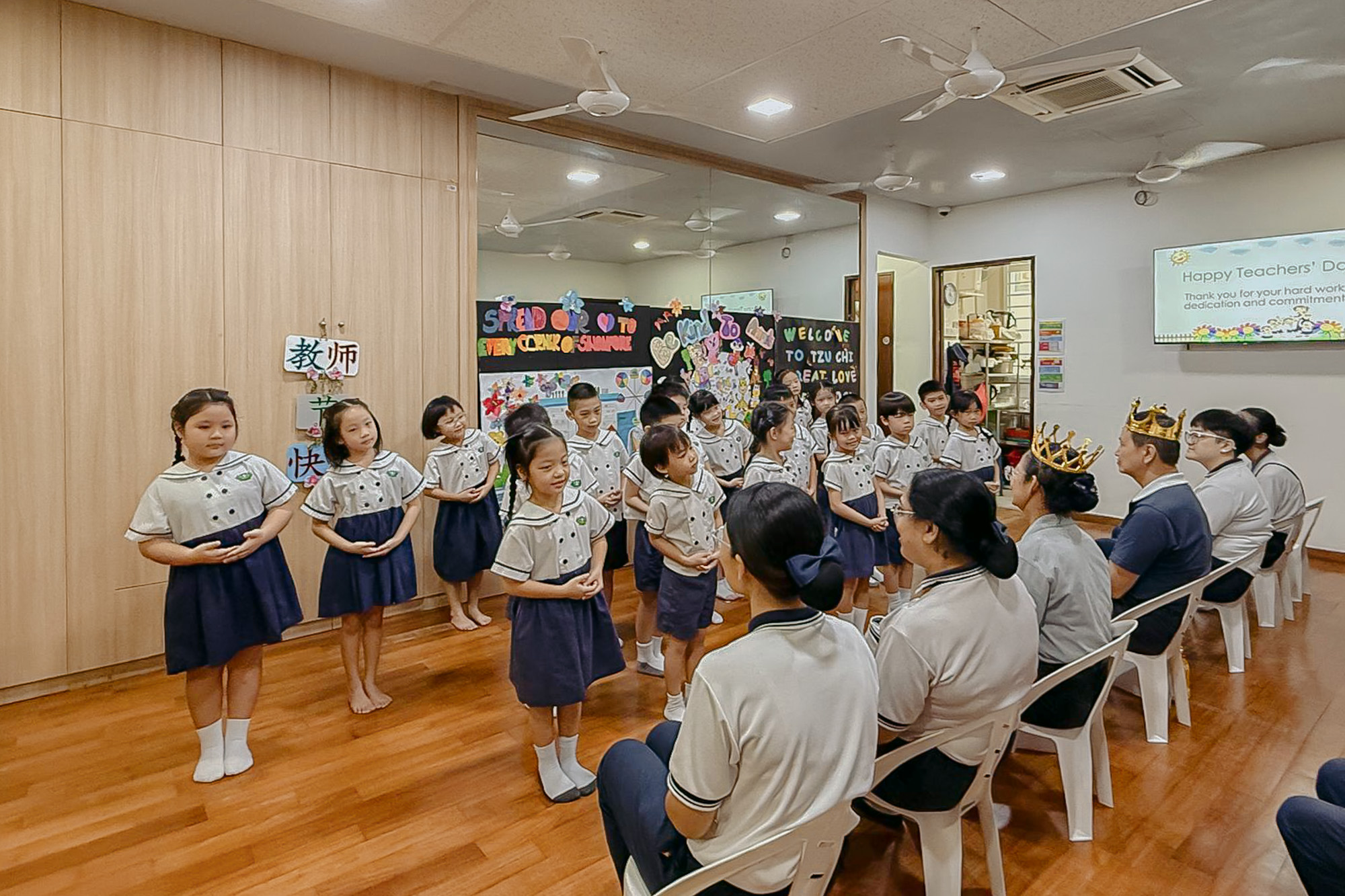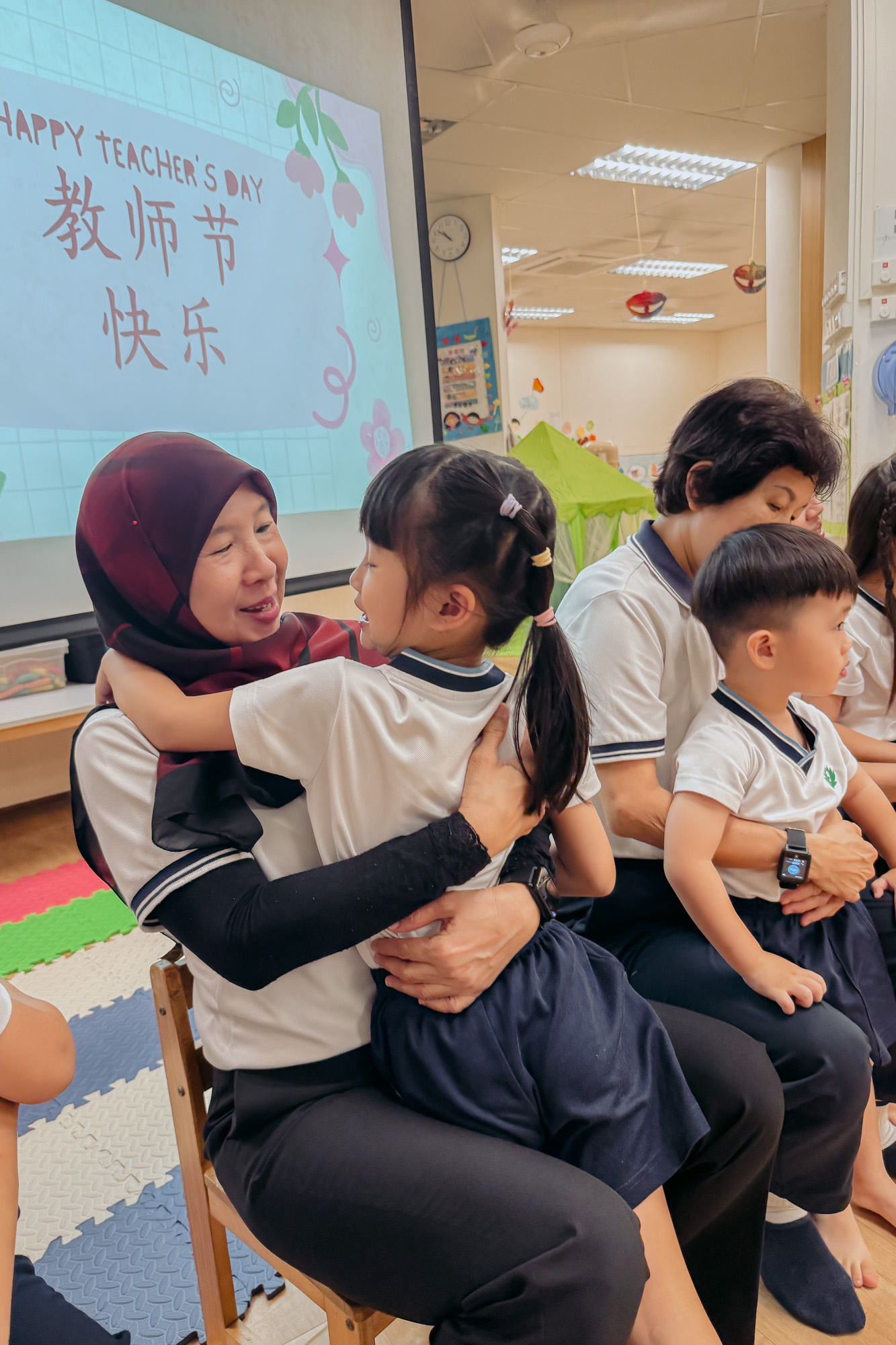 当孩子们将一杯杯热茶递送到老师手中时,许多老师都已热泪盈眶。年轻老师陈奕卉与陆立文动情分享:“有志工告诉我们,能在年轻时就拥有带孩子的经验,是一种福报。今天看到我俩从“playgroup(18个月至2岁的孩子)”带大的孩子能为我们奉茶,真的很开心和激动。”许多老师在分享时,因感触而喜极而泣。大家一致表示,看着陪伴成长的孩子,如今懂得以行动表达感恩,那泪水既是辛劳的见证,也是爱的回响。